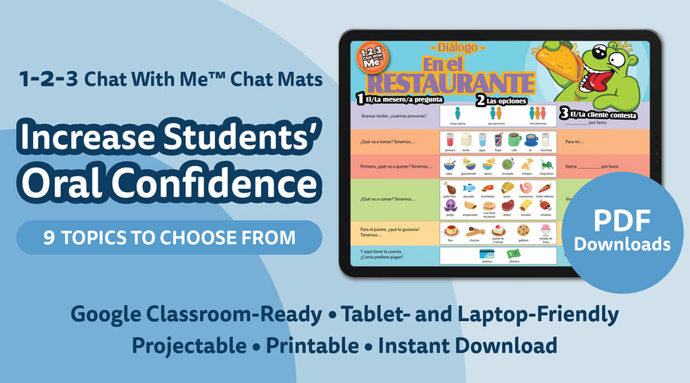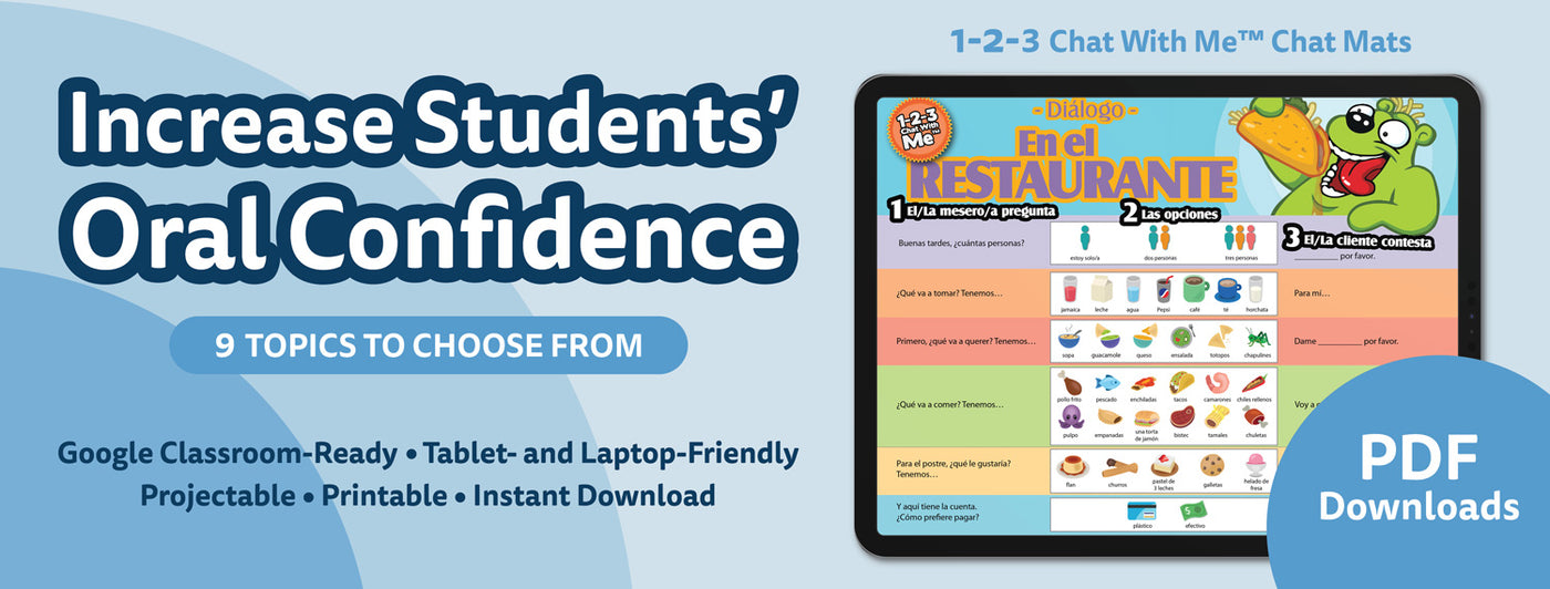 1-2-3 Chat With Me - Set of All 9 Spanish Chat Mat PDF Downloads