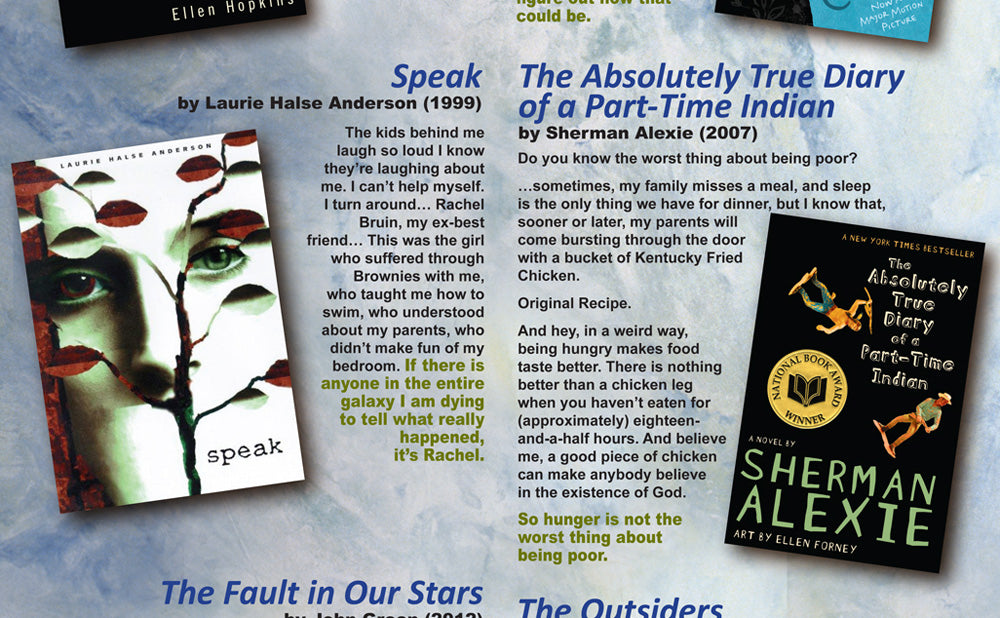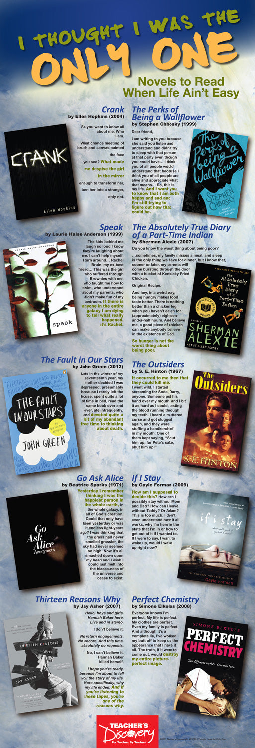 Excite your students about reading with this young adult and modern novel poster on real-life problems that many students face. In each featured novel, the teen characters are facing difficult problems and challenging life experiences. After reading the previews text from 10 novels, your students will be longing to pick up the book and discover what happens next! This poster is a perfect addition to your classroom library or reader’s workshop.