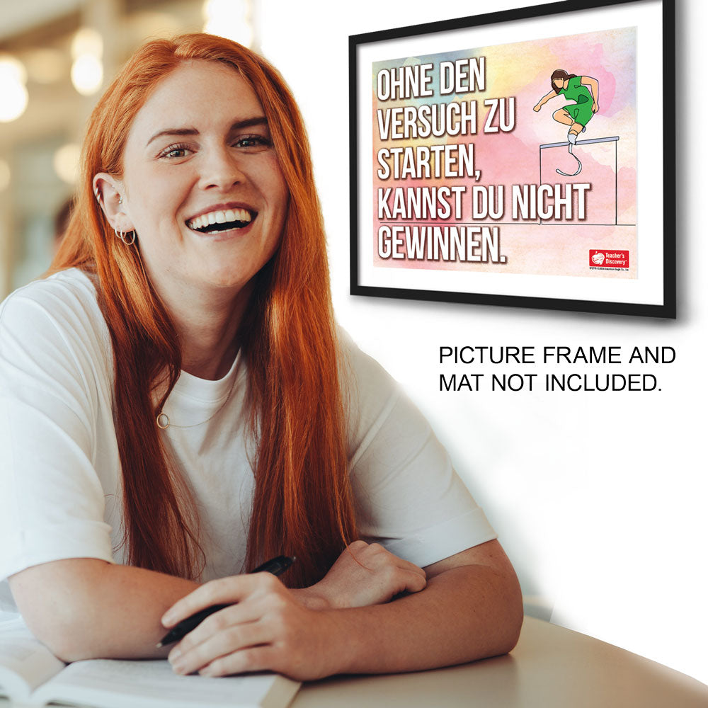 Get in the game. You'll never win if you don't start. New compact size is designed to fit in a standard-sized frame. 14 x 11 inches. Cardstock.