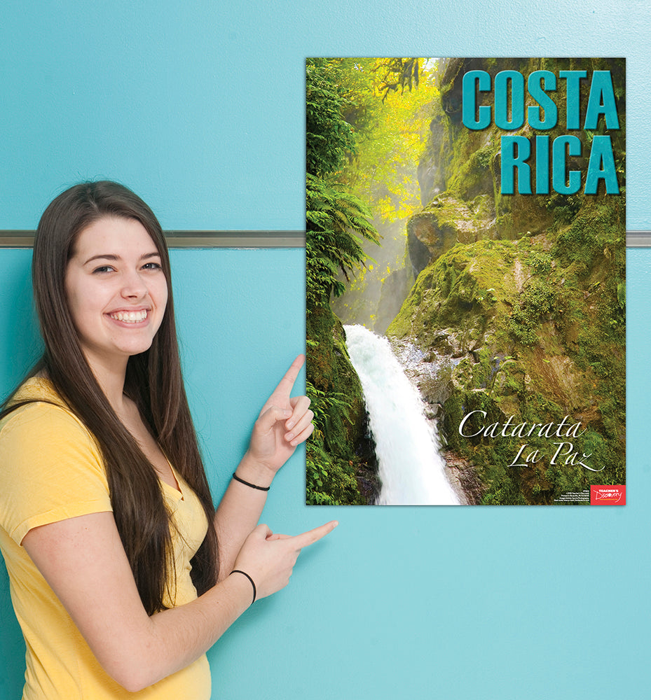 Bring Catarata La Paz, one of the most spectacular sites in Costa Rica, into your classroom. 19 x 27 inches. Laminated.