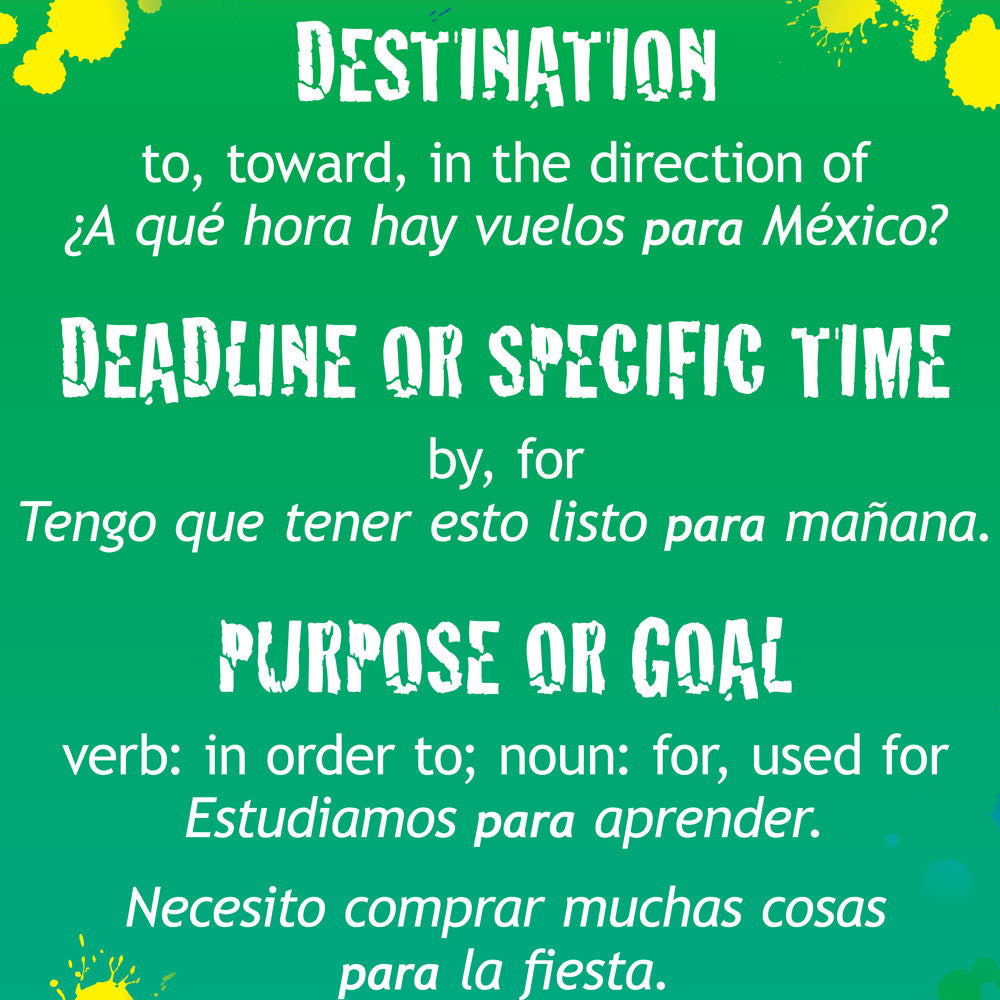 Surround students with target Spanish vocabulary, by adding por o para instructions posters to your classroom. 13 x 38 inches. Laminated.