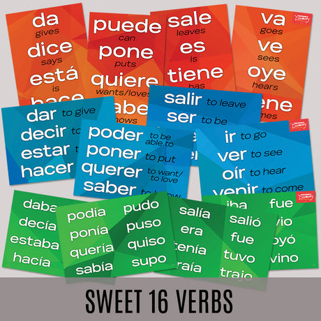 Sweet 16 Verbs - Spanish - Mini-Posters - Set of 12