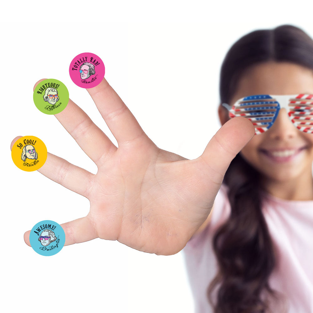 The unanimous Declaration of an awesome job! Reward students with stickers featuring four fresh Founders: Washington, Franklin, Jefferson, and Hamilton.