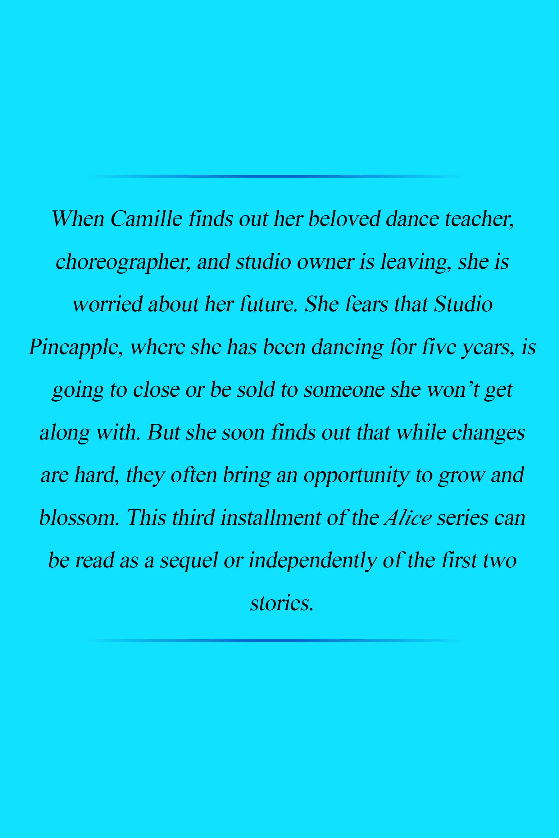 When Camille finds out her beloved dance teacher, choreographer, and studio owner is leaving, she is worried about her future. She fears that Studio Pineapple, where she has been dancing for five years, is going to close or be sold to someone she won’t get along with. But she soon finds out that while changes are hard, they often bring an opportunity to grow and blossom. This third installment of the Alice series can be read as a sequel or independently of the first two stories.