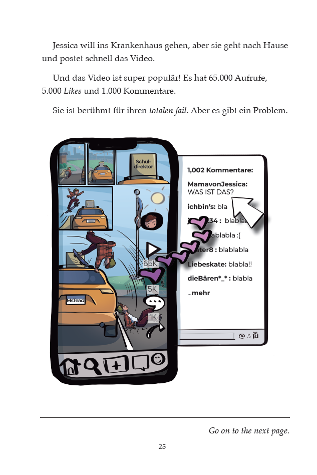 Written primarily in the present tense using approximately 210 unique words, it will appeal to students who appreciate the challenge of gaining recognition on social media. It is appropriate for middle- and high school-age learners and contains helpful full color illustrations on almost every page plus a glossary.