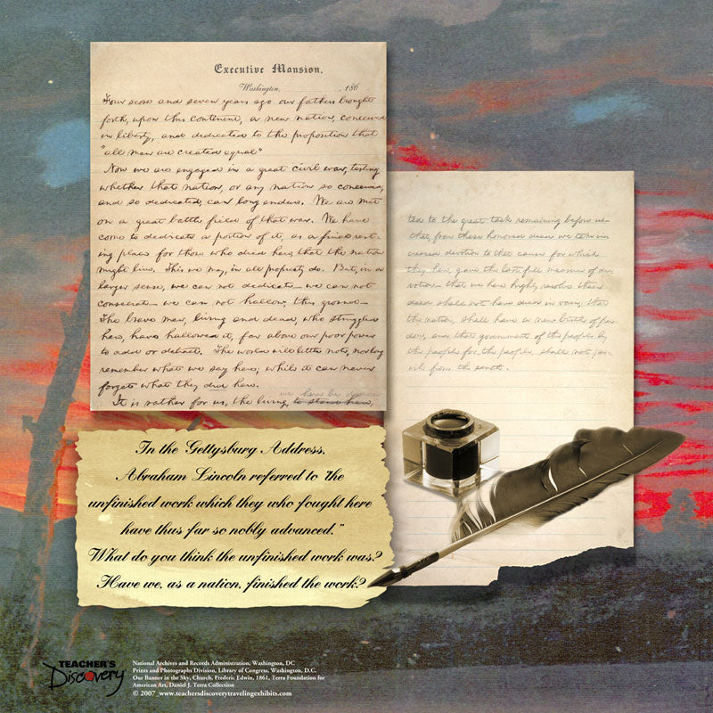 The focus of the Civil War Traveling Exhibit is the grim reality of the war. This thought-provoking exhibit includes 3 large as life pieces, 7x17 feet, 4x8 feet and 4x4 feet. Printed on lightweight satin fabric, they are easy to install from any drop ceiling with hardware enclosed.