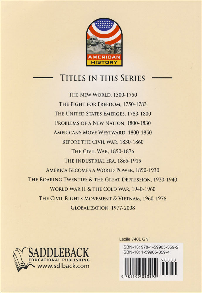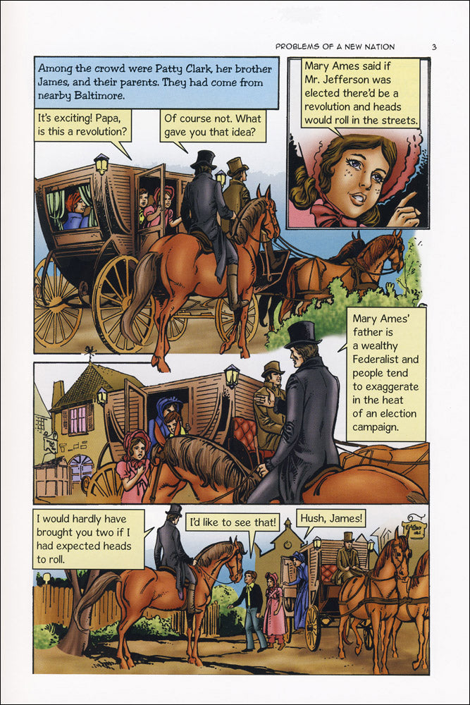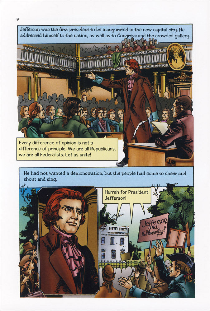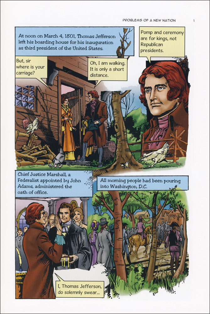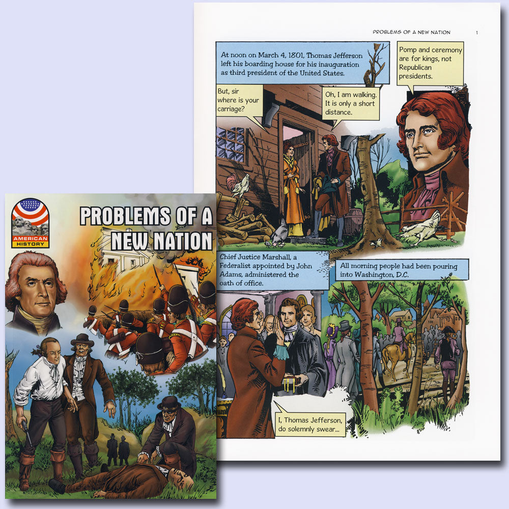 History is a story. See it brought to life in this graphic narrative beginning with President Jefferson’s inauguration and spanning across Jefferson’s Embargo Act, the composition of The Star-spangled Banner, and Calhoun’s doctrine of nullification. Your students will experience the period through realistic renderings of famous historical figures, including Presidents Jefferson and Madison, and Tecumseh. Natural dialogue along with narrative text provides readers two simultaneous yet different perspectives of pivotal events in American history.
