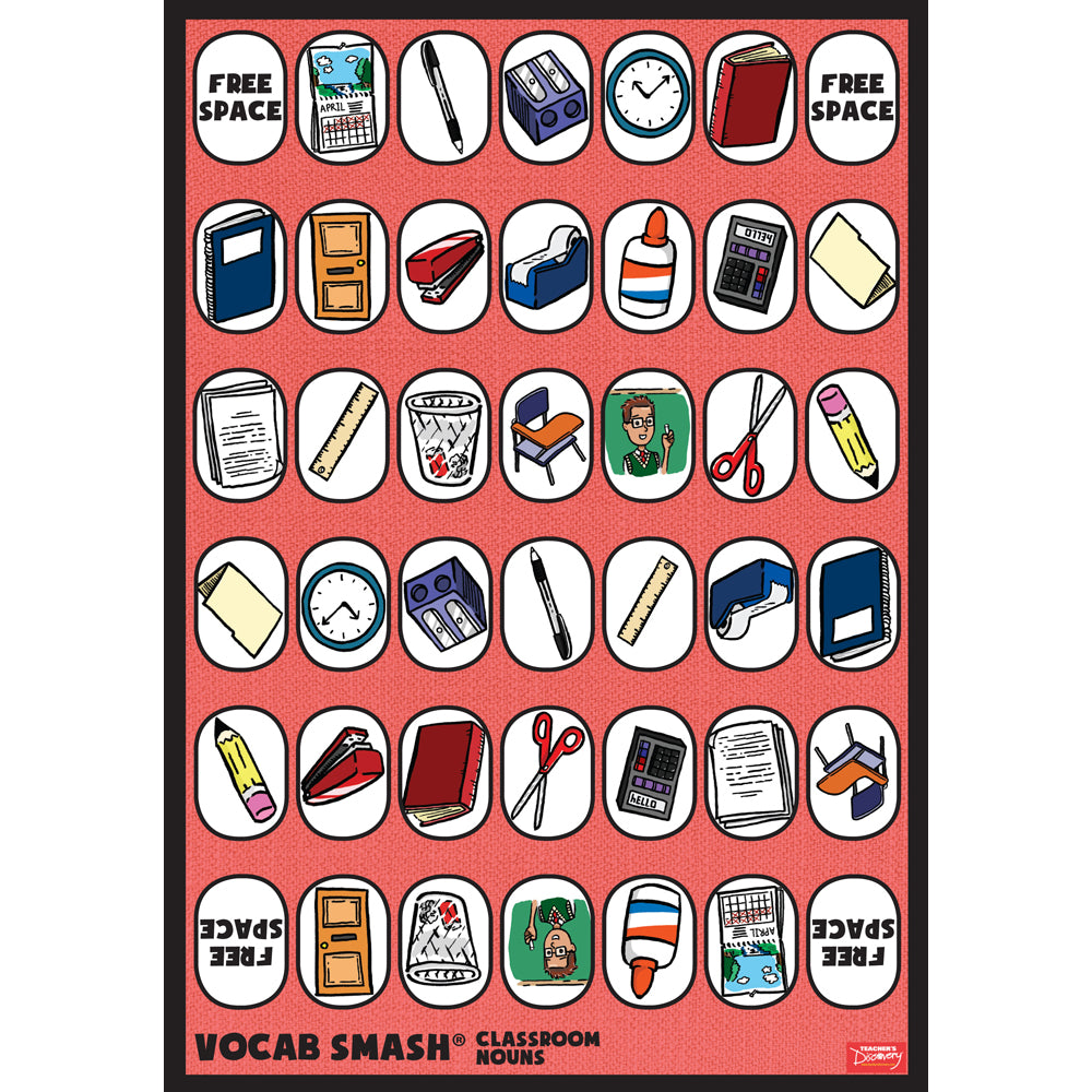 Vocab Smash has students using new vocabulary right away. Play a card from your hand, and place a chip on the matching image on the game board. The first person to get four in a row yells "Vocab Smash" and wins!