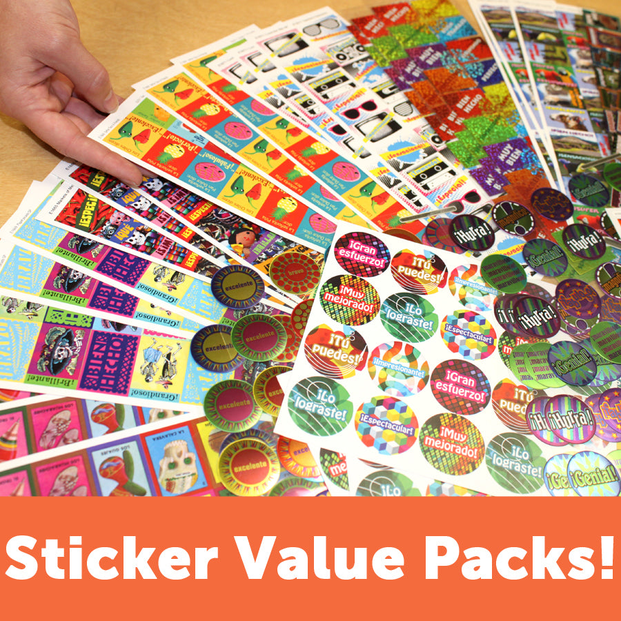 Spanish Sticker Packs - Mega Spanish Sticker Pack (1500) is backordered and will ship as soon as it is back in stock.