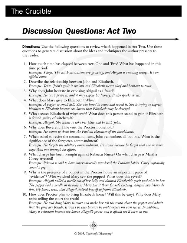 The Crucible Novel Guide Book Teaching Unit with Lesson Plans, Activities, Discussion Questions and Much More