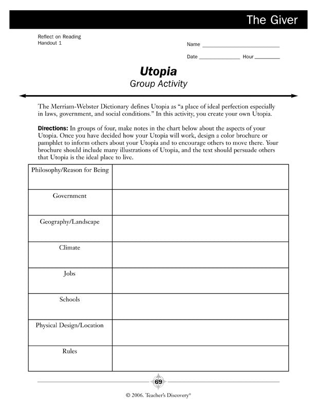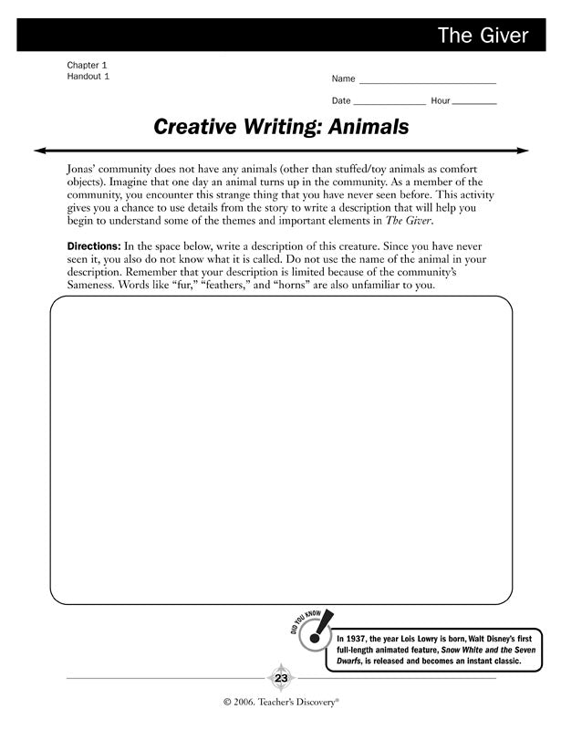 The Giver Novel Guide Book Teaching Unit with Lesson Plans, Activities, Discussion Questions and Much More