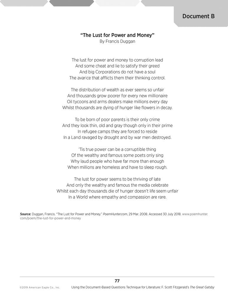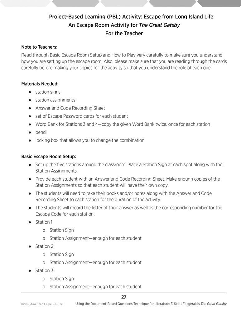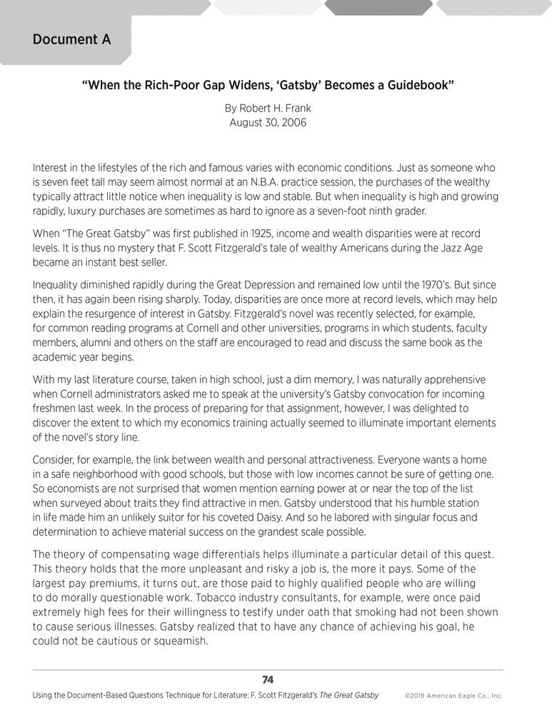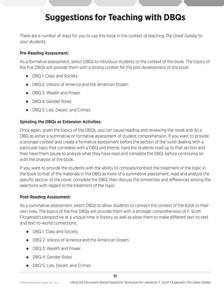Using the Document-Based Questions Technique for Literature: F. Scott Fitzgerald's The Great Gatsby Book