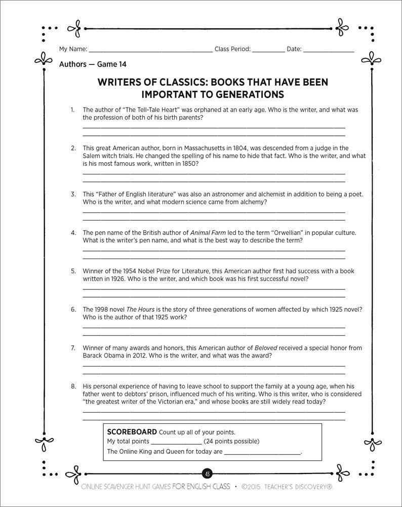 Students use their computer, laptop, tablet, or smartphone to find the answers to these questions and many more. Includes enrichment projects that encourage your students to be creative while using information from some of the games played.