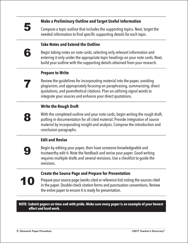 Take your high school students step by step through the research process with this clear and concise student manual. Provides students all of the tools needed to write an effective research paper.