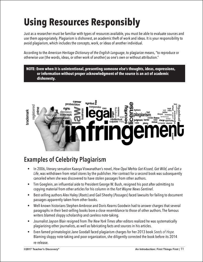 • finding and using resources, creating source cards, and writing note cards