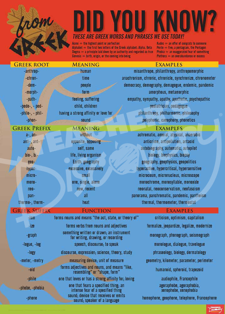 Greek Language Common Roots Poster is backordered and will ship as soon as it is back in stock.