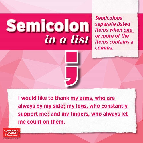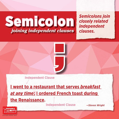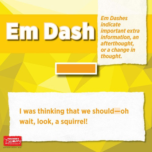 Finally, a poster set that addresses the punctuation marks high school students struggle with most. This set of 10 mini-posters covers commas, semicolons, colons, em dashes, and hyphens. Each poster includes an example sentence.