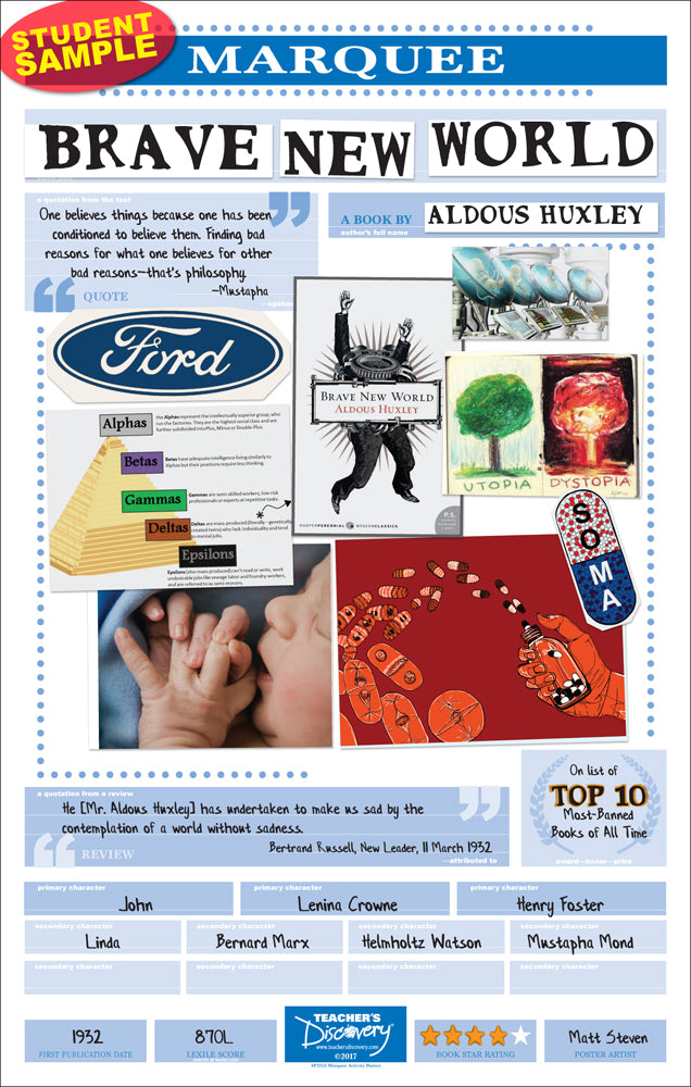 Poster-board movie marquee activity requires each student to respond, research, and critically think about the novels they have read. Generous space is provided for students to draw, create a collage, or a bit of both, as they recall and represent symbols, motifs, and themes of the work.