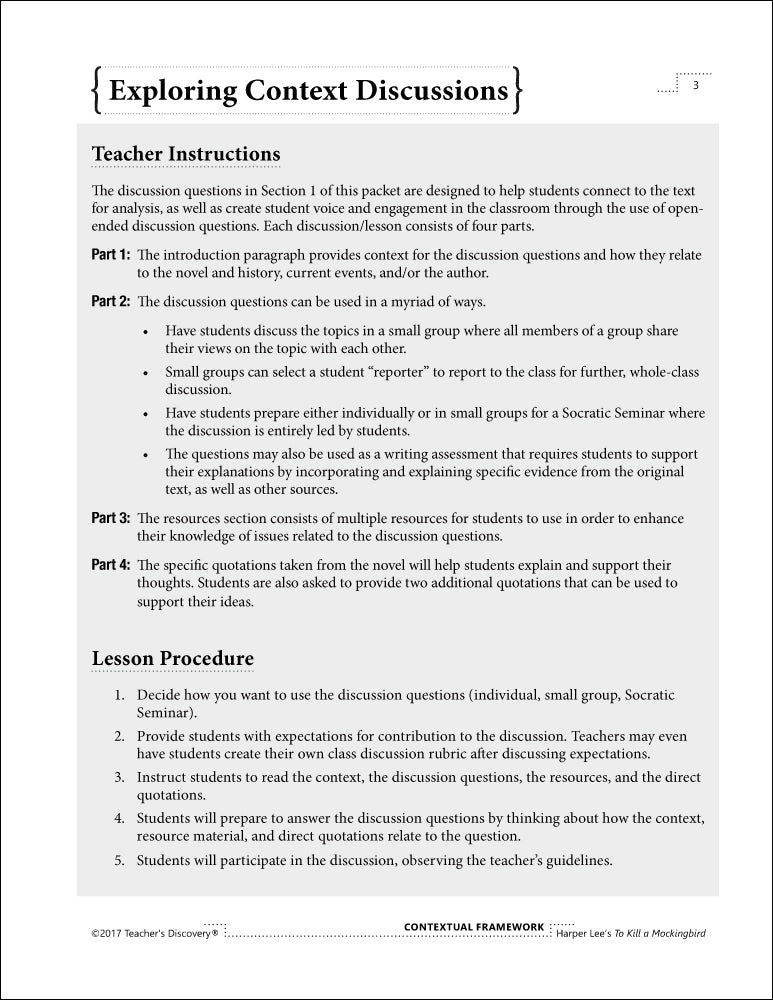 How would living within a system of Jim Crow laws and being surrounded by groups like the KKK affect a young person of any race? How do gender expectations shape all of us, regardless of our gender? Where do you see aspects of Truman Capote’s own life and personality in the character of Dill? How does economic status impact the way the citizens of Maycomb treat one another? Context-based questions give students the framework for a deeper analysis and understanding of Harper Lee's To Kill a Mockingbird.