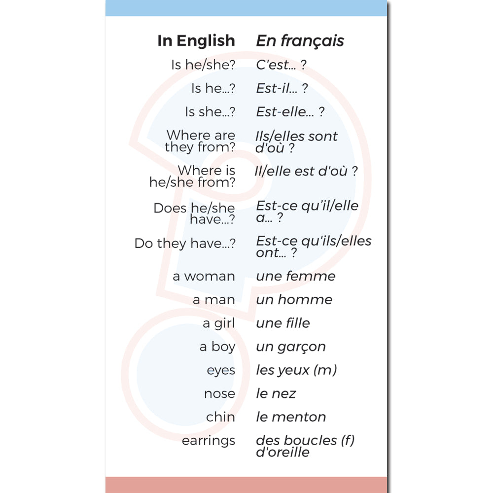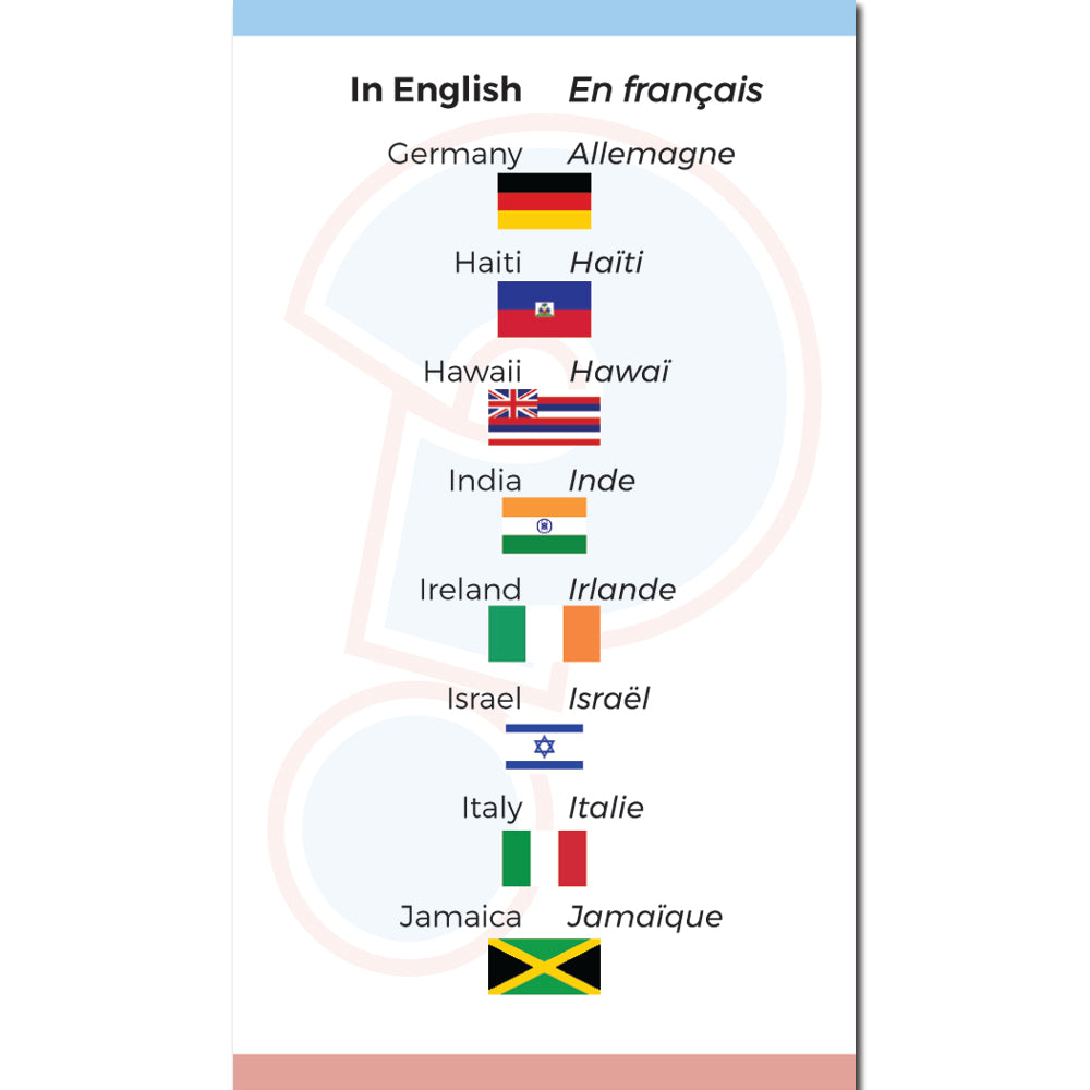 ©2017. English, French. Beginning. Two players or teams. 66 laminated cards in an acrylic box. Cards measure approximately 3 x 2 inches.