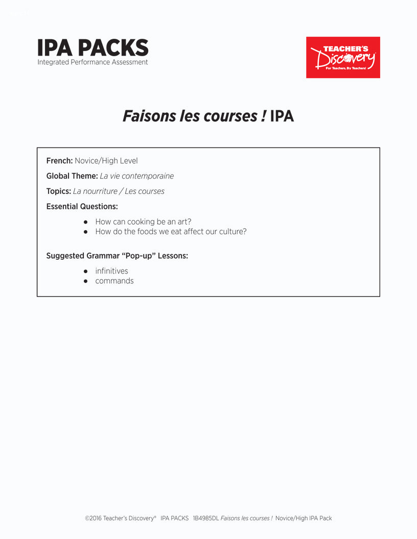 Faisons les courses ! Novice/High French IPA Pack—DOWNLOAD THIS FLEXIBLE DIGITAL RESOURCE TODAY!