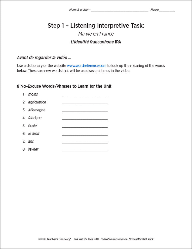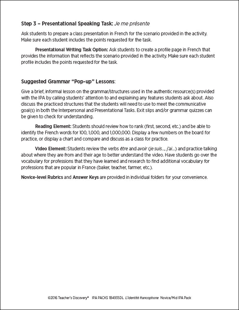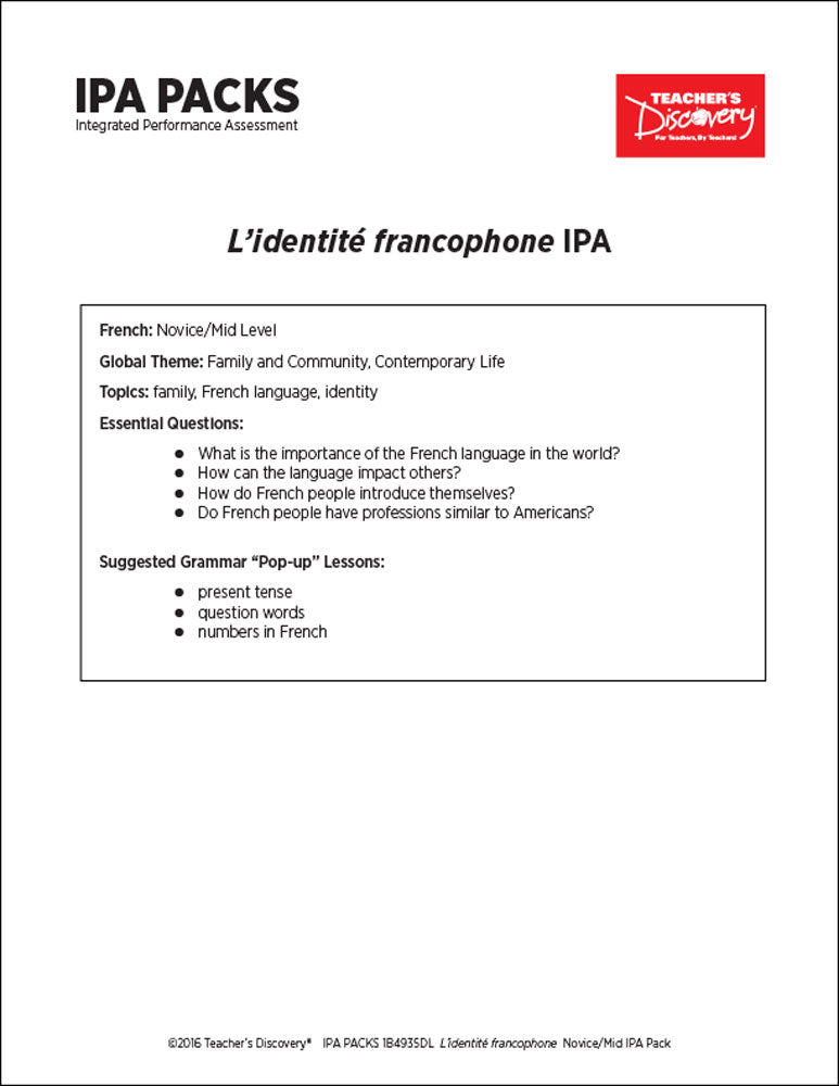 L’identité francophone Novice-Mid French IPA Pack - DIGITAL RESOURCE DOWNLOAD
