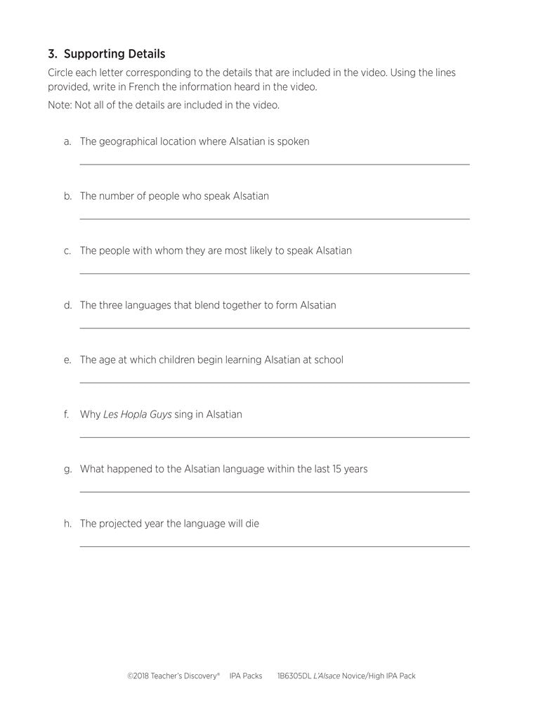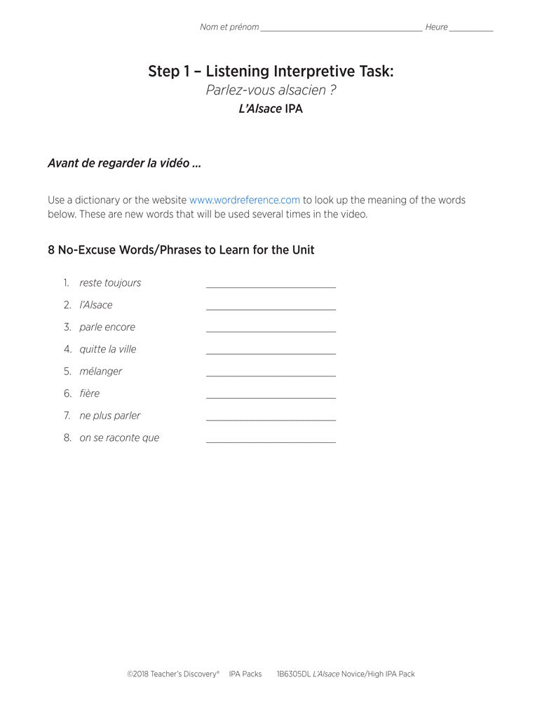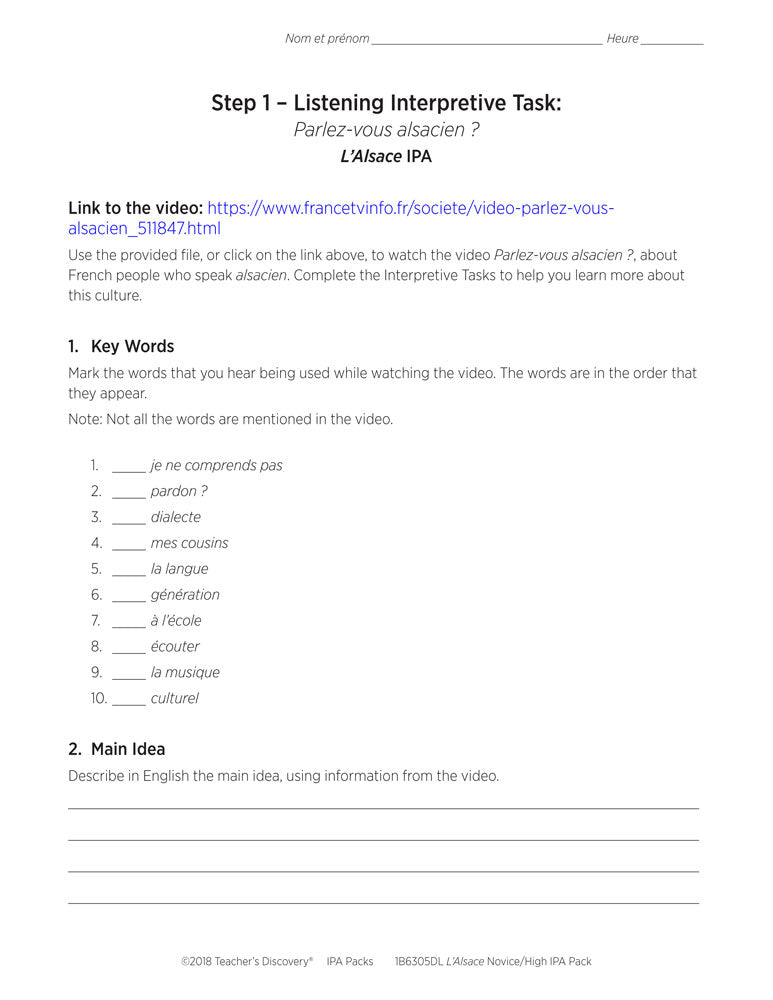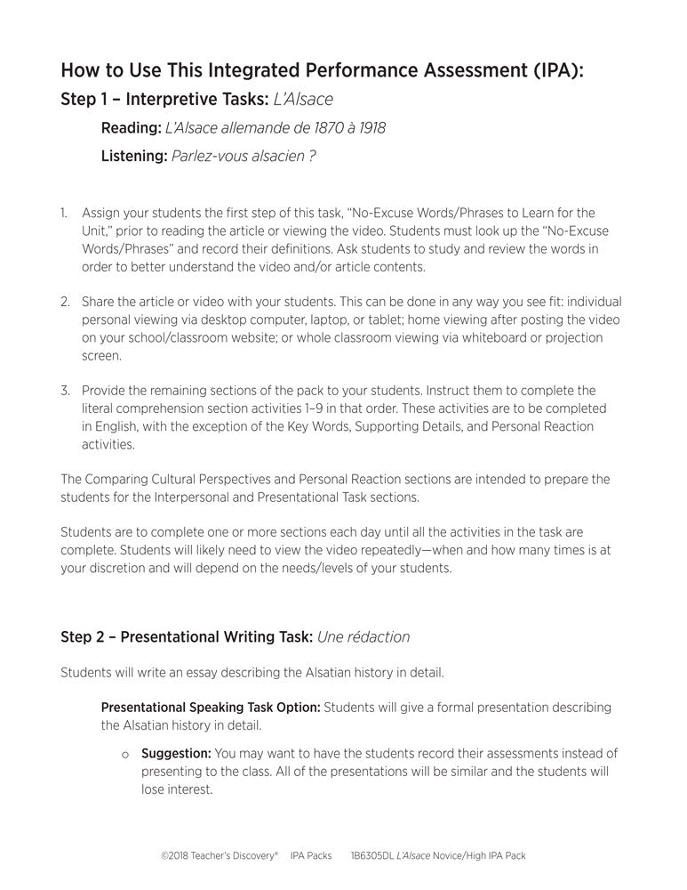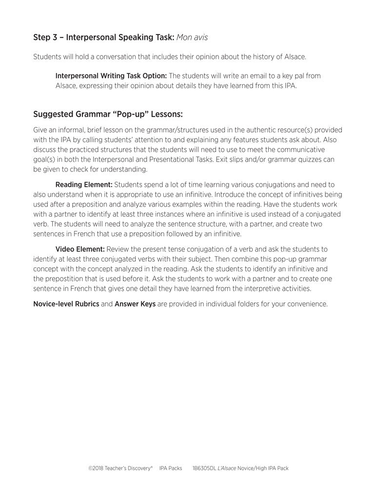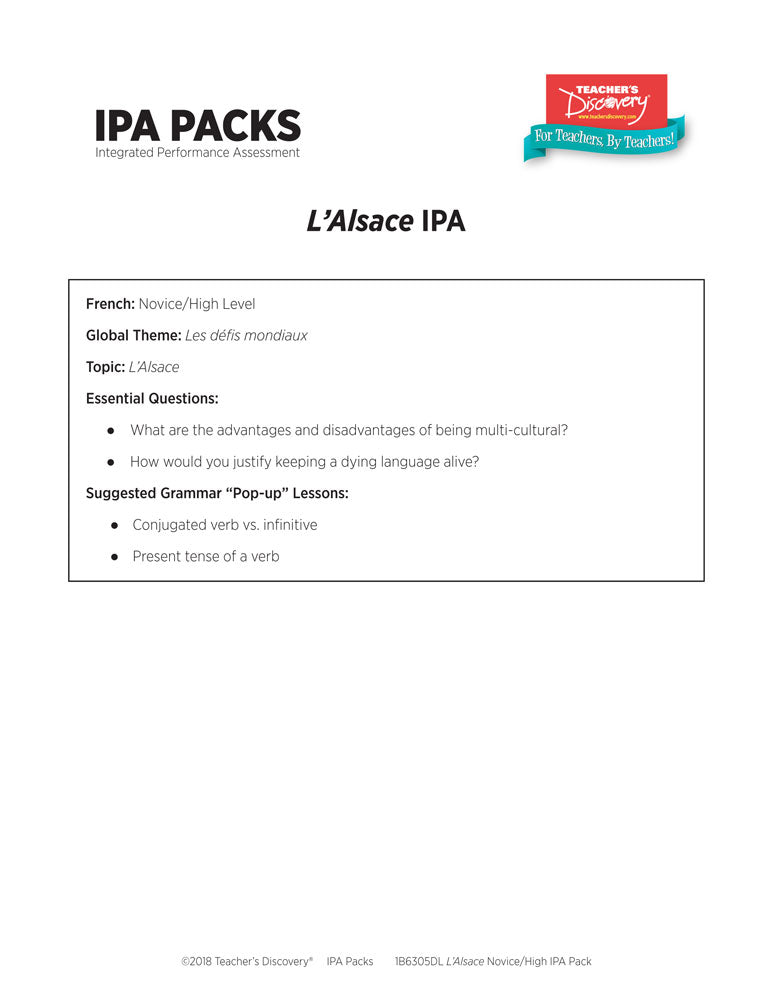 L'Alsace Novice-High French IPA Pack - DIGITAL RESOURCE DOWNLOAD