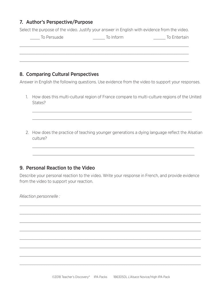 L'Alsace Novice-High French IPA Pack - DIGITAL RESOURCE DOWNLOAD is backordered and will ship as soon as it is back in stock.