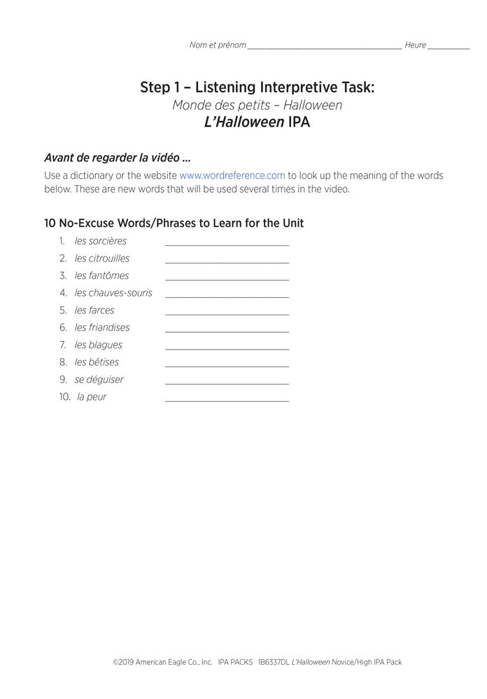 L'Halloween Novice/High French IPA Pack - DIGITAL RESOURCE DOWNLOAD