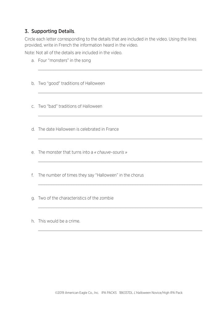 L'Halloween Novice/High French IPA Pack - DIGITAL RESOURCE DOWNLOAD is backordered and will ship as soon as it is back in stock.