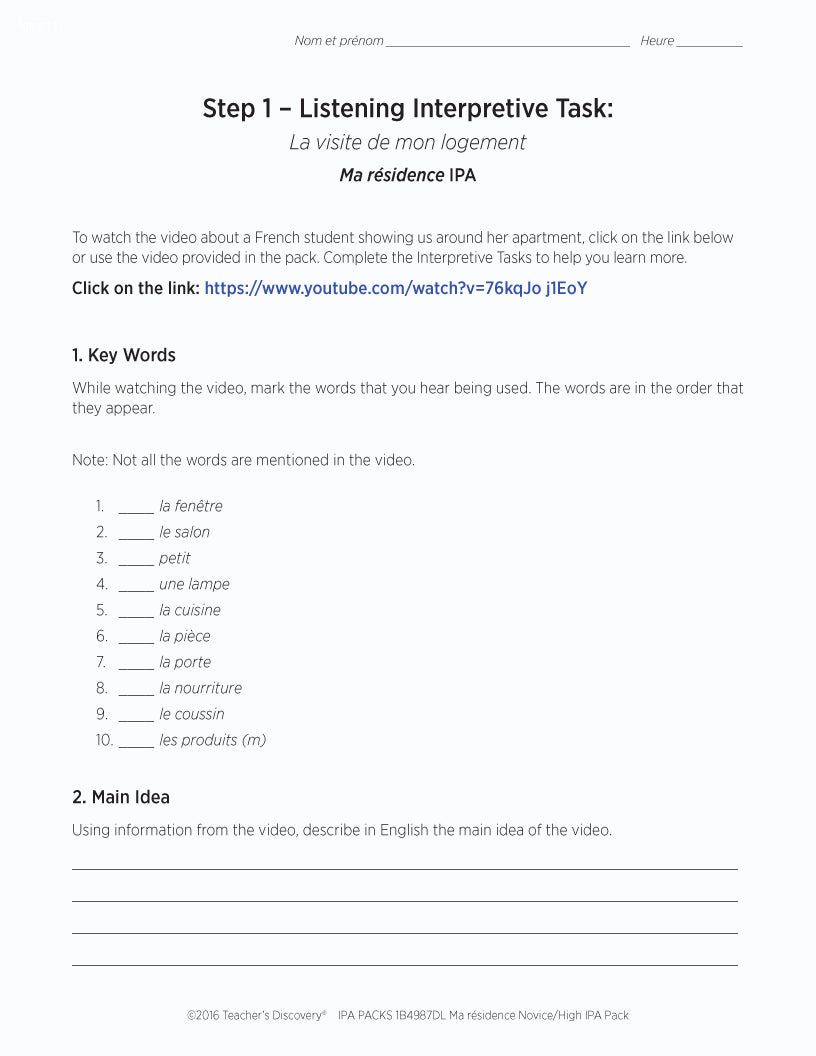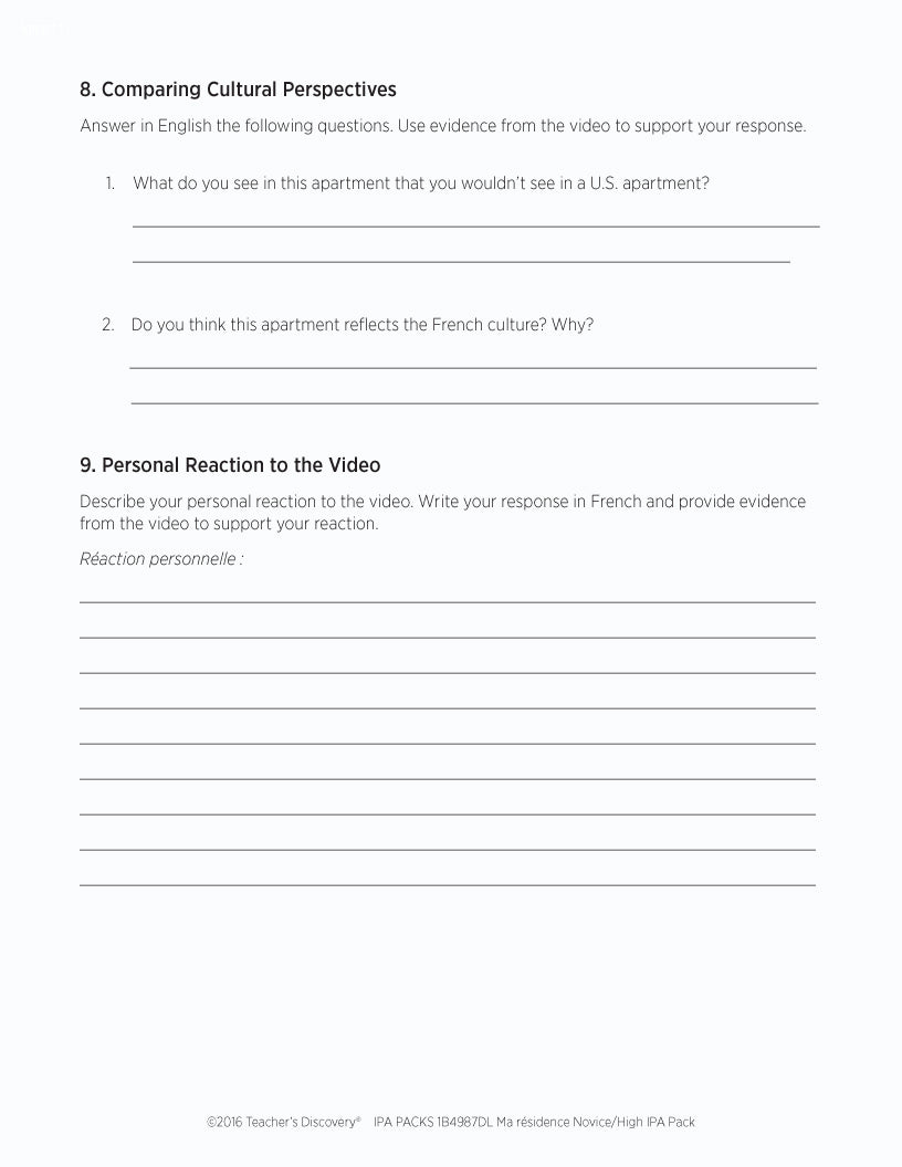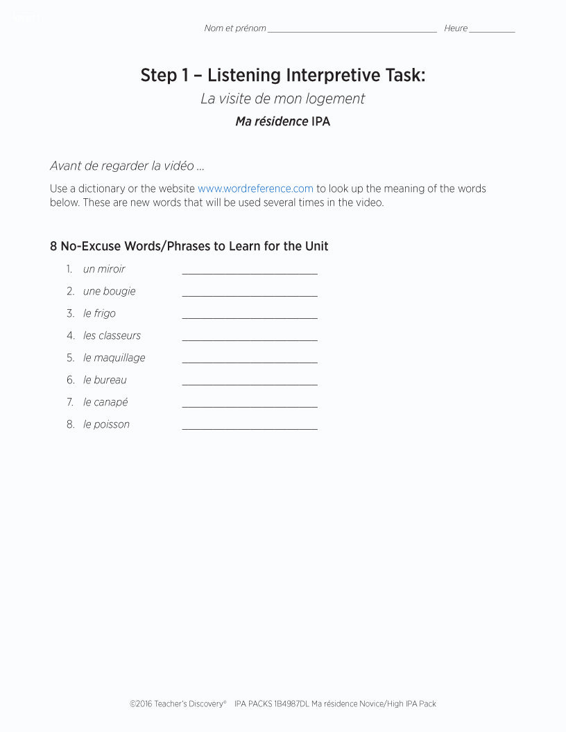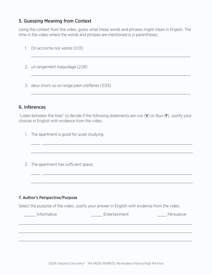 This IPA Pack Download is based on two authentic resources: a rental apartment advertisement and video of a French college student giving a tour of her French apartment by walking through the layout and pointing out the cultural details in 100% French.
