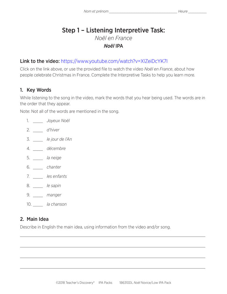 This IPA Download Pack is based on two authentic resources: an article about what Christmas is like for children in the francophone culture and a short video Noël en France, about how people celebrate Christmas in 100% French.