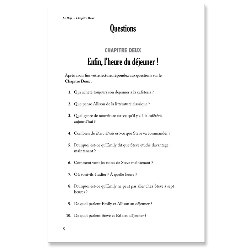 French students are powerless to resist these tales of homework and heartbreak, travels abroad and troubles at school, young love and true friendship! Relatable characters and school-appropriate yet teen-relevant themes draw students in, immersing them in first-year grammar and vocabulary topics.