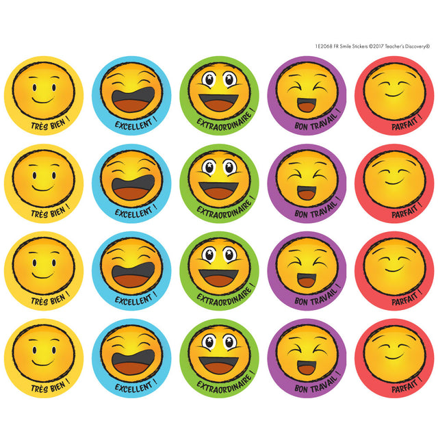 Give your students something to smile about! Five sheets of 20 assorted full-color stickers, for a total of 100 stickers. Each round sticker measures approximately one inch across.