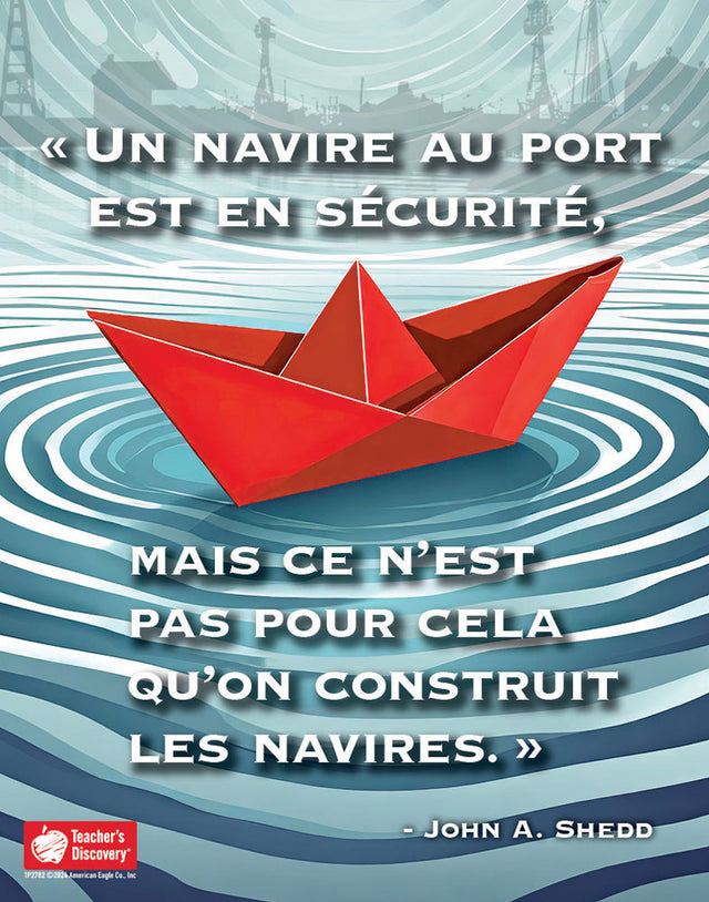 "A ship in harbor is safe, but that is not what ships are built for." Display this quote by author, teacher, and risk-taker John Augustus Shedd for inspiration. New compact size is designed to fit in a standard-sized frame. 11 x 14 inches. Cardstock.