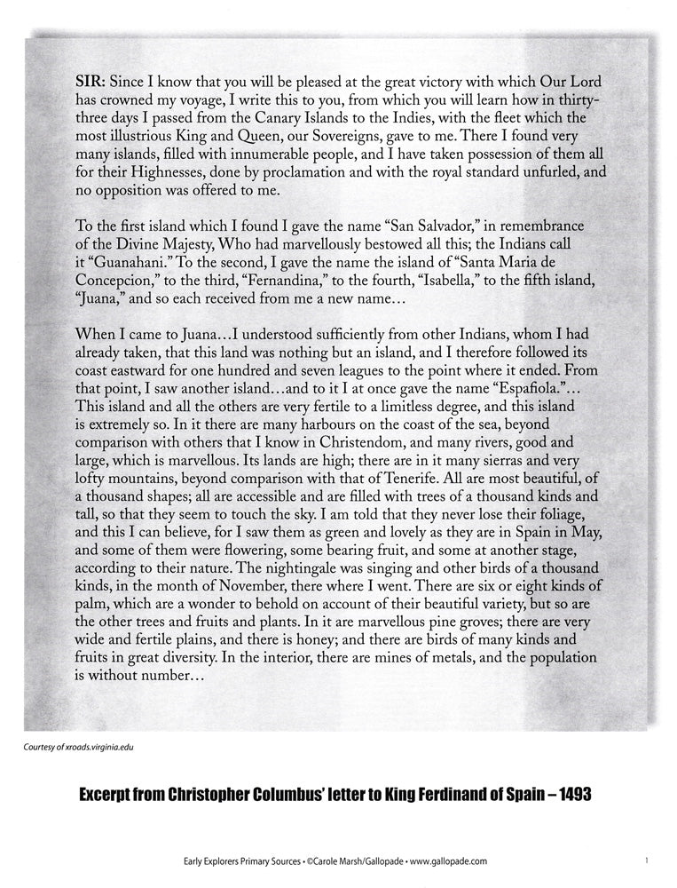 - Excerpt from Christopher Columbus’ letter to King Ferdinand of Spain – 1493