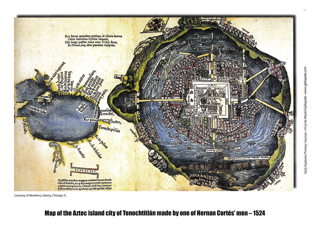 - Map of the Aztec island city of Tenochtitlán made by one of Hernán Cortés’ men – 1524