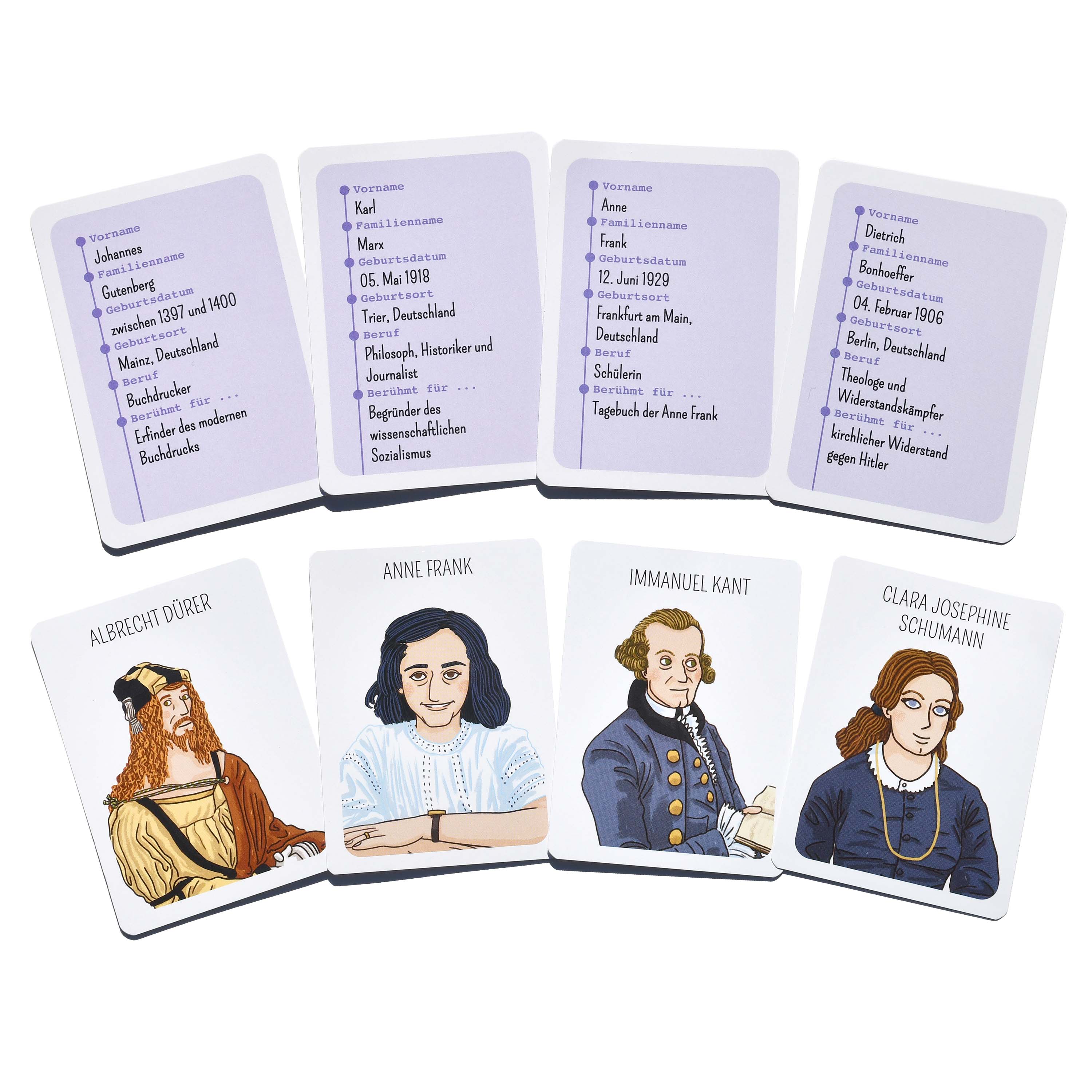 German-Speaking Personalities is a useful and entertaining card game in which picture cards with the portraits of well-known personalities of German-speaking culture and geography are to be matched with the corresponding profiles.