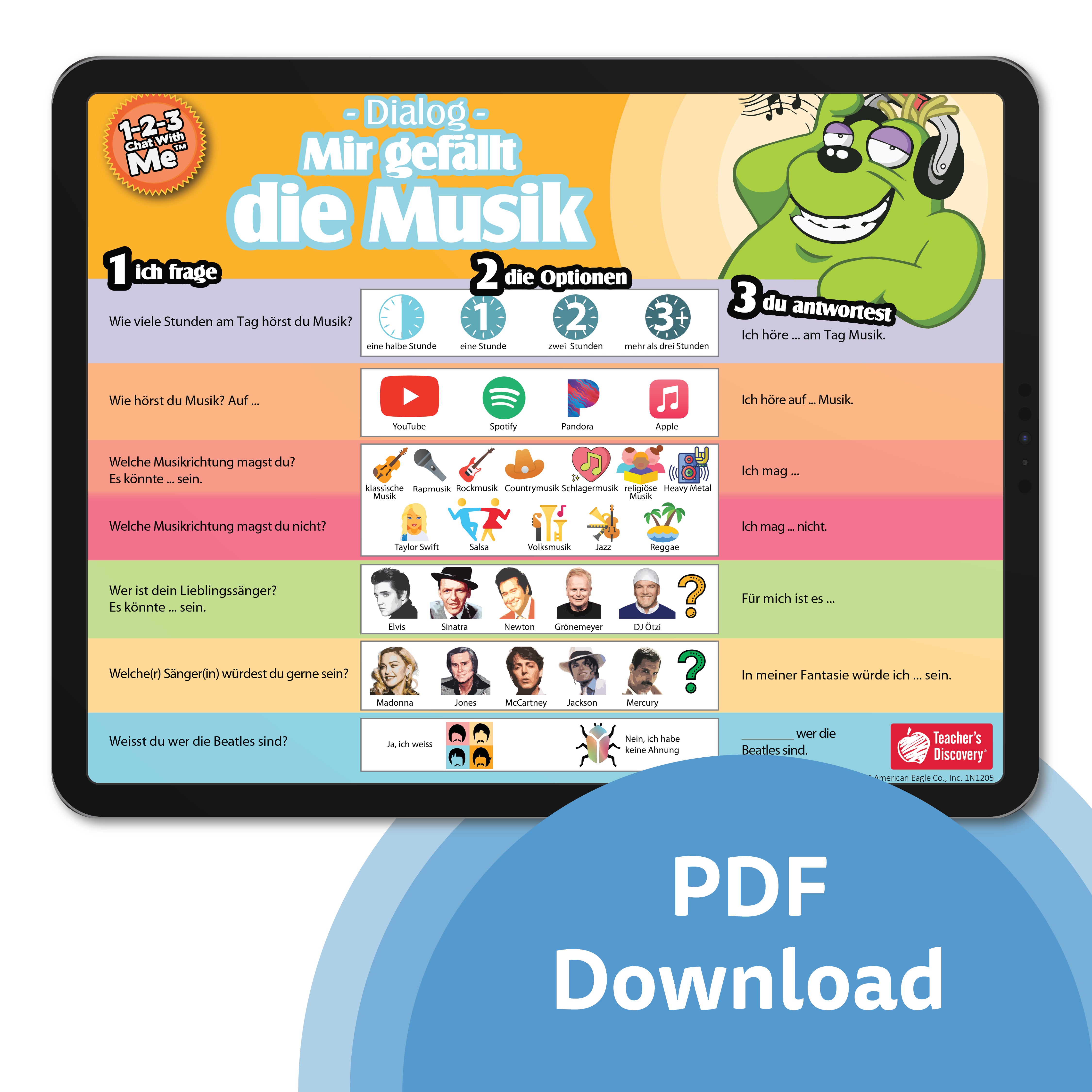 1-2-3 Chat With Me: Mir gefällt die Musik German Chat Mats - Download is backordered and will ship as soon as it is back in stock.