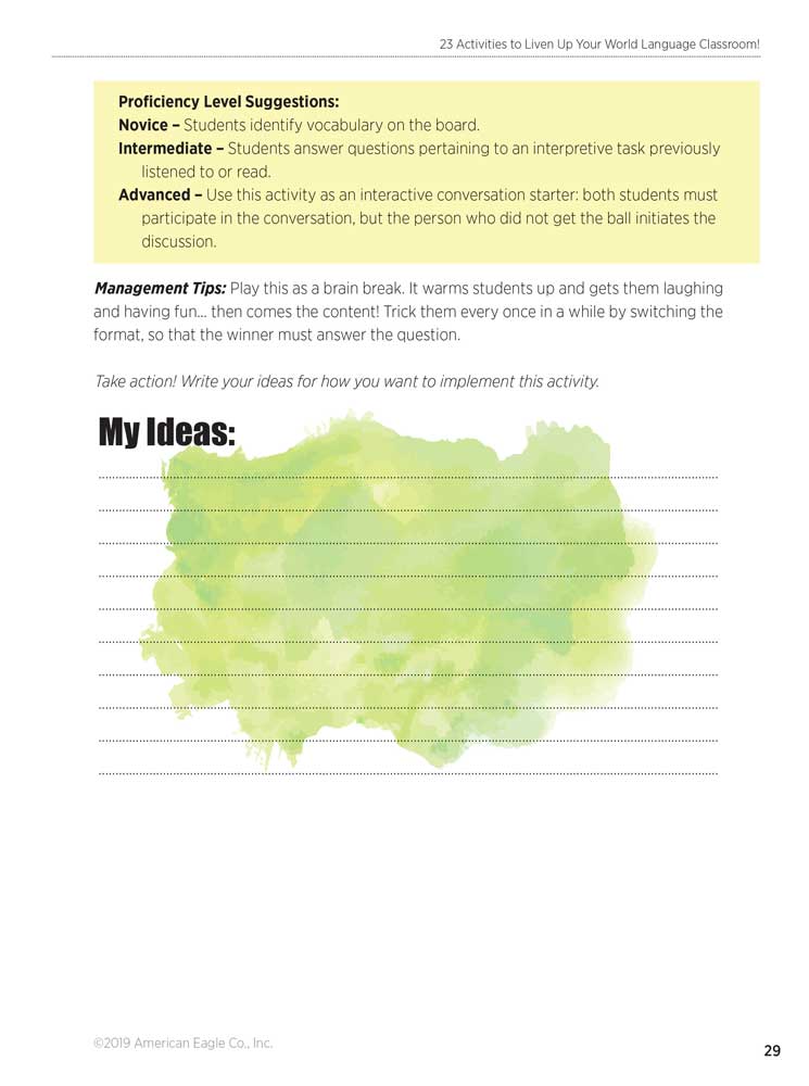 23 Activities to Liven Up Your World Language Classroom Book - 23 Activities to Liven Up Your World Language Classroom Book Download (1B6846DL) is backordered and will ship as soon as it is back in stock.