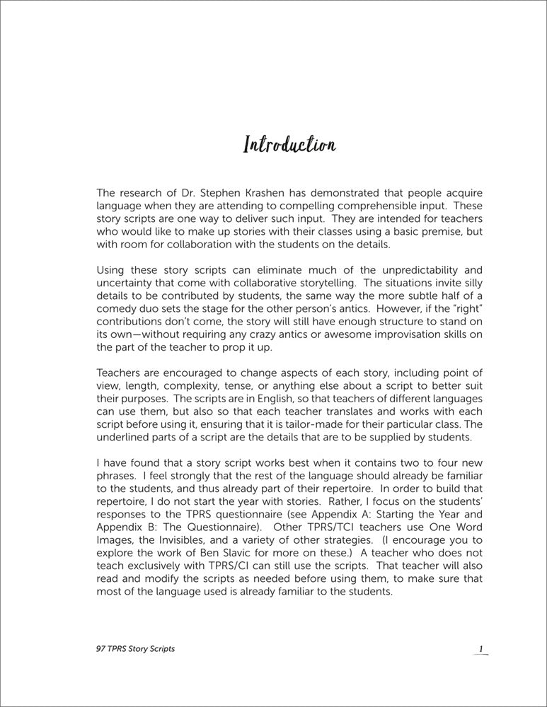 97 TPRS Story Scripts Book - 97 TPRS Story Scripts Book Download (1B6129DL) is backordered and will ship as soon as it is back in stock.