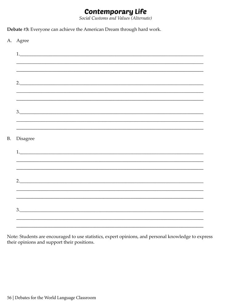 Written by expert educator Gerry DeStefano, choose from 90 teen-friendly debate topics that make language proficiency easy and fun on you and your high schoolers. DeStefano's questions are tailored so teens focus their thoughts, and build the confidence they need to speak. Expertly written debate questions on subjects that matter to teens—contemporary life, beauty and aesthetics, science and technology, and other AP® World Language exam topics—allow students to enjoy practicing their target language. This book includes teacher instructions for holding a debate, an easy-to-use grading rubric, and debate topics aligned with the major vocabulary themes specified by the College Board for AP World Languages: