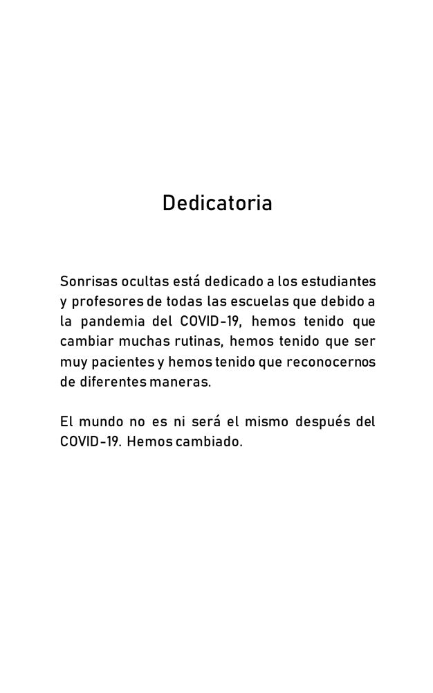 Initially, classes stopped being face-to-face and became virtual classes. But pressure from civil society drove students back into buildings even though the pandemic was still a threat. This is how masks became the most important school supply for students and the most effective teaching tool for teachers. Sonrisas ocultas is a book that tells some of the stories that the pandemic created in schools around the world.