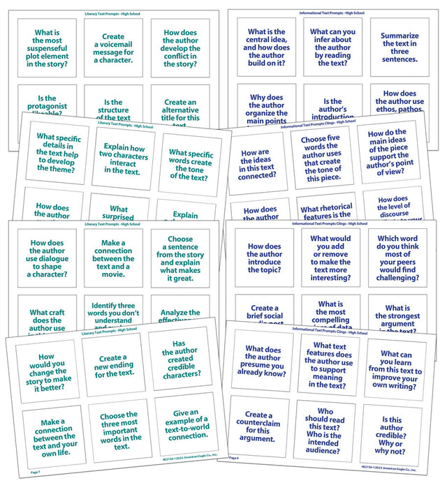 Literary Text and Informational Text Prompt Clings - High School is backordered and will ship as soon as it is back in stock.