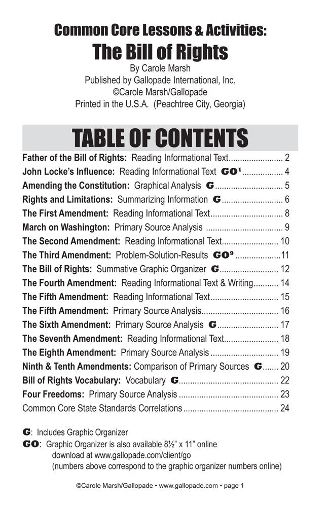 The Bill of Rights - Common Core Lessons and Activities includes: