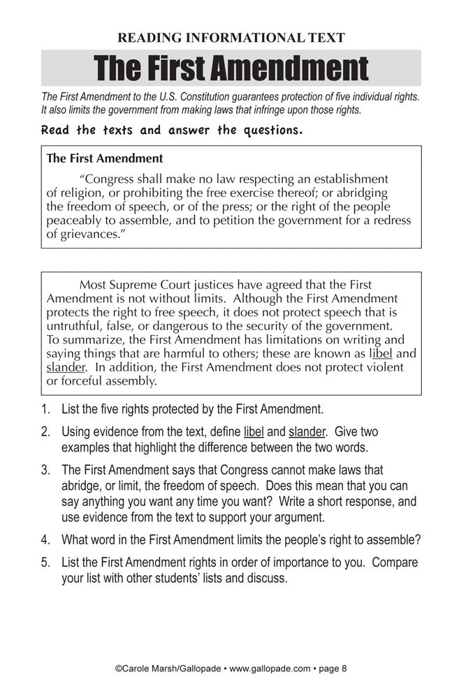 The First Amendment: Reading Informational Text