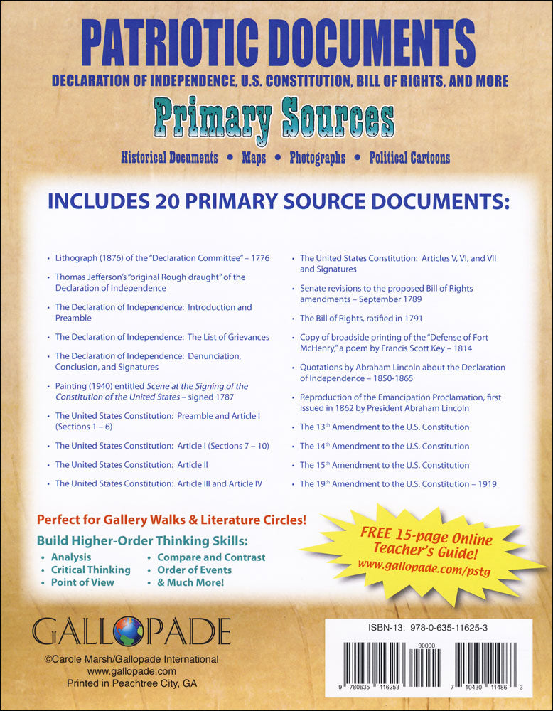 Patriotic Documents Primary Sources Pack is backordered and will ship as soon as it is back in stock.