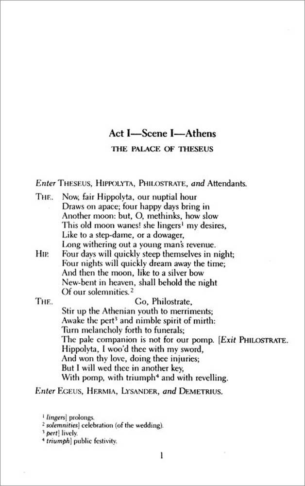 Perhaps the most popular of all Shakespeare's comedies, A Midsummer Night's Dream humorously celebrates the vagaries of love. The approaching wedding festivities of Theseus, Duke of Athens, and his bride-to-be, Hippolyta, Queen of the Amazons, are delightfully crisscrossed with the on-again, off-again romances of two young pairs of Athenian lovers; and the theatrical aspirations of a bumbling troupe of Athenian laborers. It all ends happily in wedding-night revelry, complete with a play-within-a-play presented by the laborers to the ecstatic amusement of all.