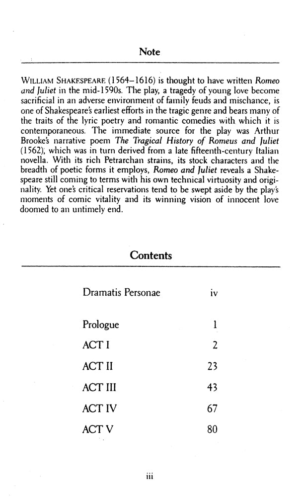 One of Shakespeare's most popular and accessible plays, Romeo and Juliet tells the story of two star-crossed lovers and the unhappy fate that befell them as a result of a long and bitter feud between their families. The play contains some of Shakespeare's most beautiful and lyrical love poetry and is perhaps the finest celebration of the joys of young love ever written. This inexpensive edition includes the complete, unabridged text with explanatory footnotes.