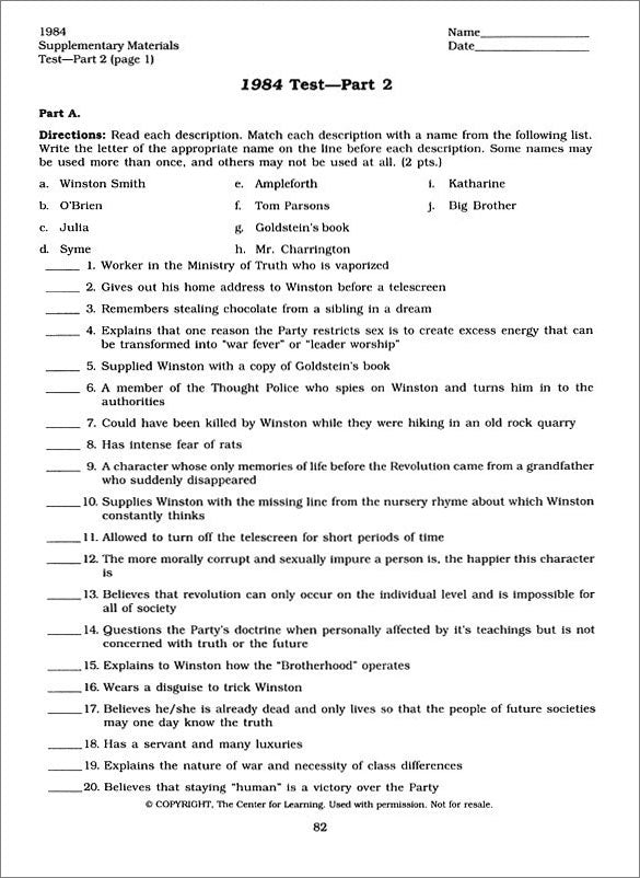 1984 Teaching Unit ~ Book ~ 12 Lesson Plans Plus 21 Student Handouts and Activities